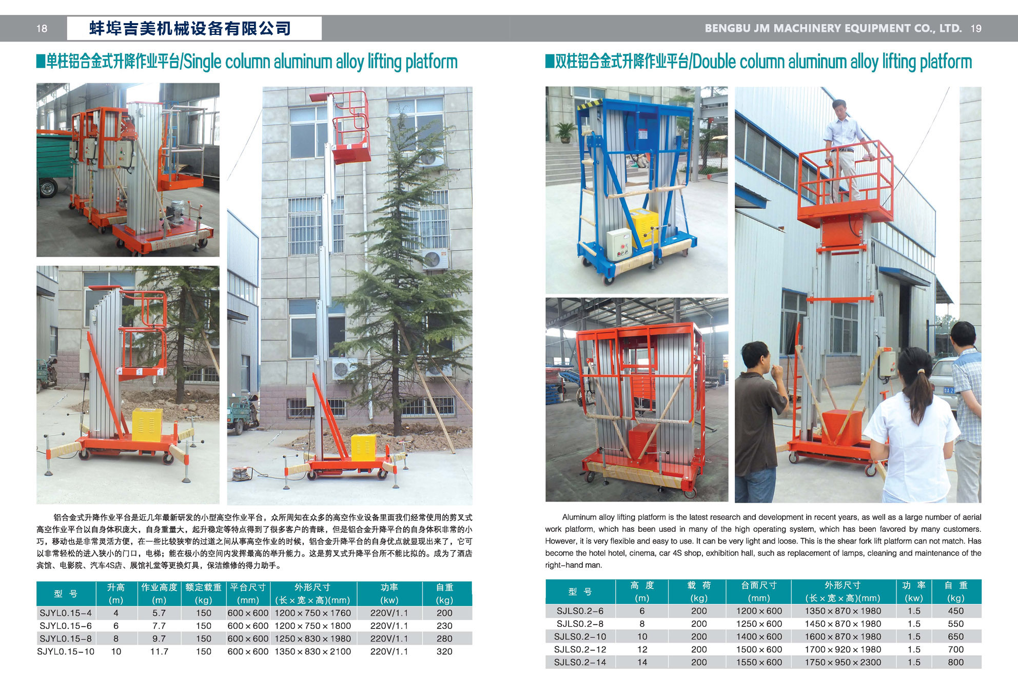 Single Column Alloy Lifting Platform